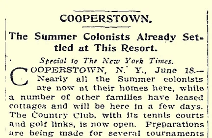 When thinking of summer resorts of the Gilded Age, Cooperstown might not immediately come to mind. That is rightly so in comparison to the Berkshires, Bar Harbor, or Newport, synonymous with opulent cottages and bold-faced names. However, in addition to the “big boys” there were a good number of smaller but still vital watering holes on the east coast that the elite frequented during that era. Cooperstown was amongst these, ranking high enough up on the list for its activities, residents and visitors to merit regular updates in the New York Times and other important newspapers of the day.